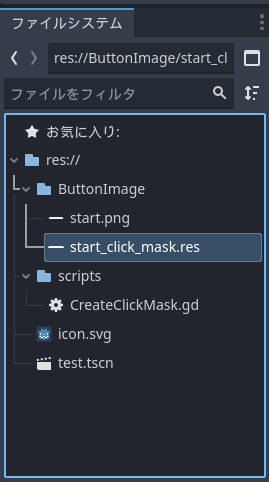 GodotのTextureButtonノードではボタンにクリック判定を持たせるためのClickMaskという項目がある。